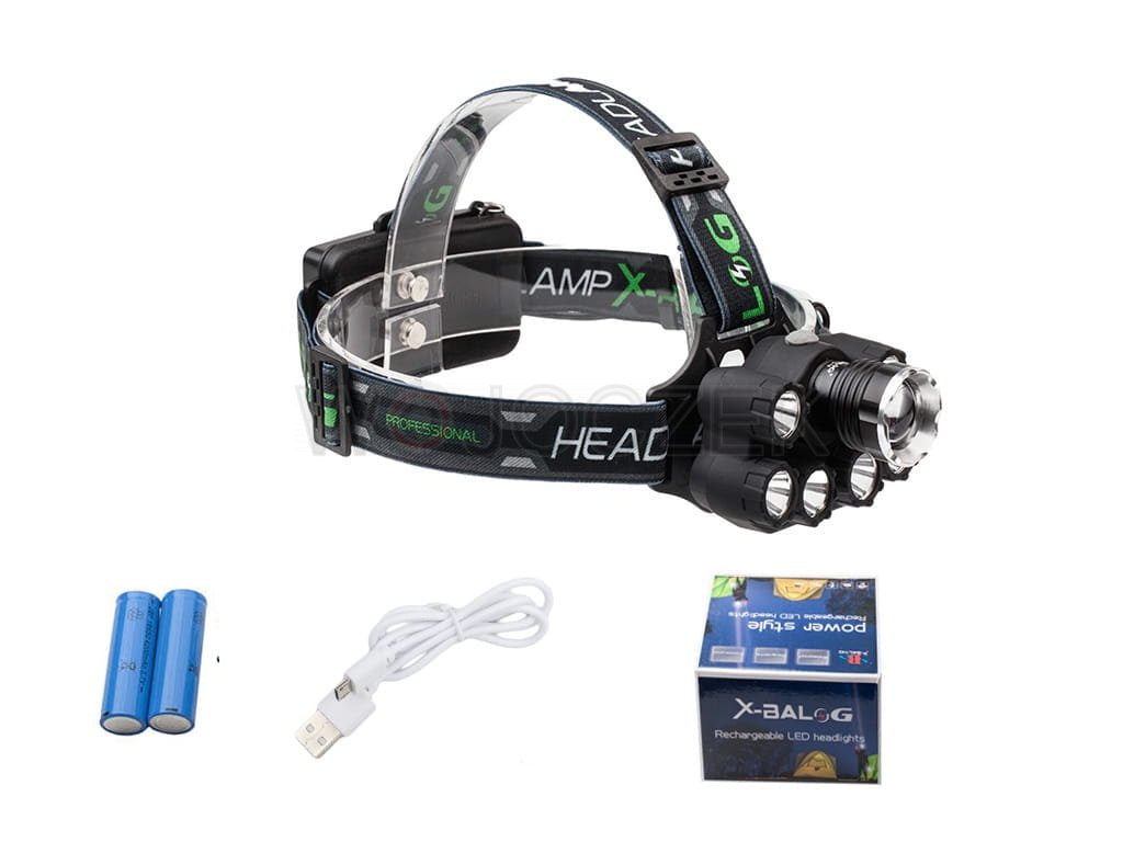 The BL-T78-B6-T6 headlamp flashlight from the renowned X-BALOG brand is a precisely designed tool ideal for all kinds of applications. Carefully constructed for professional use by uniformed services, police, military, border guards, nature lovers, mechanics, anglers, as well as for ordinary home use. The headlamp features high-tech, state-of-the-art LEDs, which, in addition to being highly energy-efficient, have downright blinding brightness. Extremely bright XM-L T6 main LED, four XP-E LEDs and two specialized UV LEDs. The lifetime of each diode is up to 100,000 hours of operation! Depending on the mode used, you can get between 1,000 and 5,000 lumens, such power is used only in professional and specialized equipment. The functionality of the UV LEDs can be used, among other things, for: detecting counterfeit banknotes and documents finding amber detecting blood and other bodily fluids checking for leaks in air-conditioning systems identifying and reading inscriptions made with UV paint The body of the X-BALOG flashlight is made of super strong aircraft aluminum alloy and non-slip ABS plastic. The combination of these materials makes the flashlight extremely resistant to damage, shock, moisture, dust and other harsh operating conditions. Powered by 2x 18650 3.7V-4.2V lithium-ion battery (included). Included is a USB - micro USB cable for charging the flashlight. The headlamp has six light modes: main XM-L T6 diode 2x XP-E diode 4x XP-E diode 2x UV diode all diodes - continuous light all diodes - strobe The main diode has a ZOOM function, i.e. a smooth adjustment of light focus, which allows you to obtain both a very wide beam with a short range and a highly focused beam with a significant range of up to 800 meters. The flashlight has an adjustable tilt angle (up/down). It is equipped with two flexible and adjustable straps. In addition, in the rear part of the flashlight has a COB LED warning light working in two modes: continuous light, white flashing light, red-green light The kit includes: flashlight X-BALOG BL-T78-B6-T6 LCZ-023, 2 x 18650 lithium-ion battery, USB cable and original box.