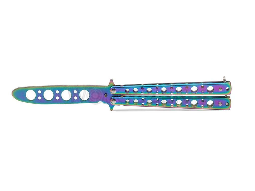 Butterfly knives originated in the Philippines, where they were used by indigenous people for everyday work. The blunt blade head was made of 420 stainless steel resistant to damage. Nowadays, this iconic model has lived to see countless variations. The N-500M butterfly knife in Rainbow Fade color looks phenomenal, arousing interest and curiosity.