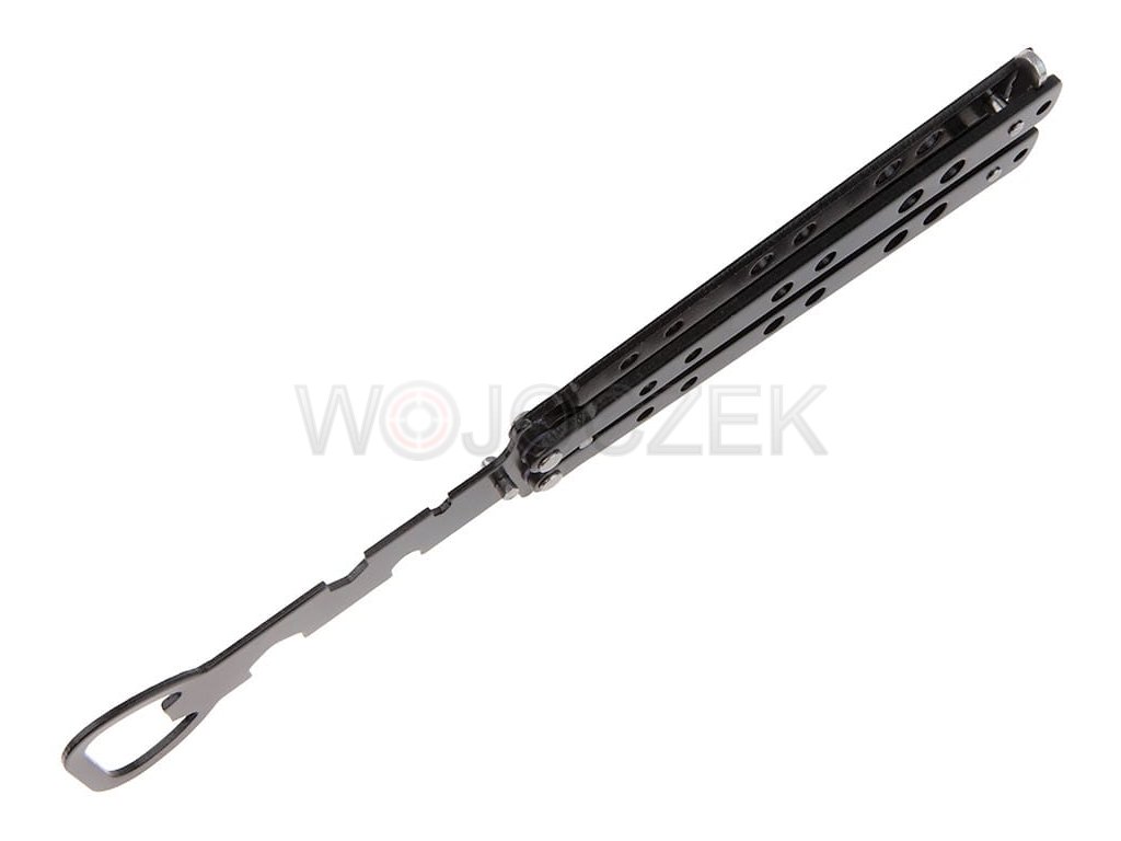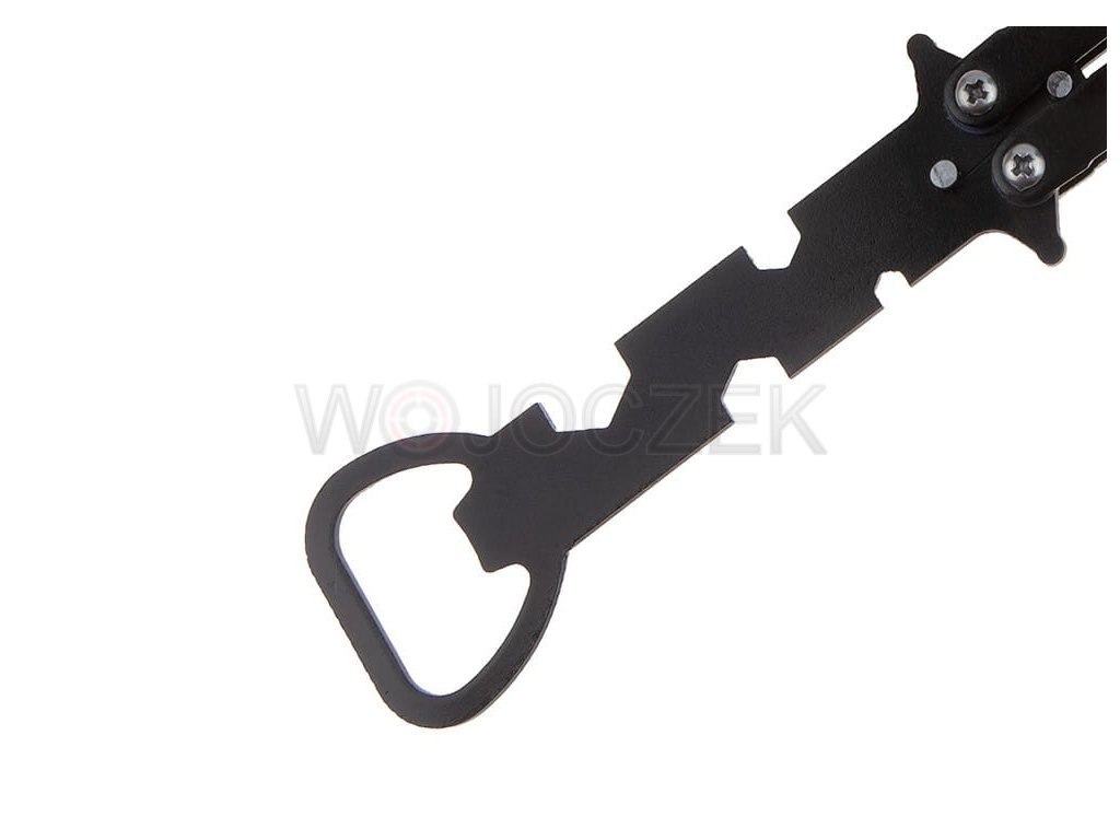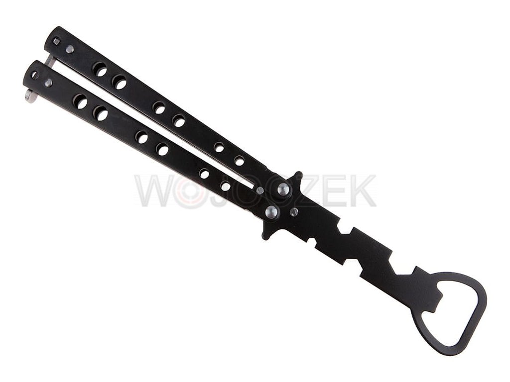 Butterfly training knife is a perfect gift for any occasion. It features a bottle opener instead of a classic head, so it will be perfect for a boyfriend's day, father's day, a beer drinker's birthday or just a fan of gadgets. Butterfly N-465D is an excellent tool for training and learning to perform various tricks and stunts. You can practice with it without worrying about any injury. . The head is made of stainless steel, and four ring keys are located on its shaft. The classic handle consists of two movable elements that protect the head in the closed position. The cap opener is lightweight and well-balanced, which makes it easy to play with it. The butterfly has a classic latch-type lock, which immobilizes the knife in the desired position. A perfect gadget for outdoor outings with friends, barbecues, camping and bonfires!