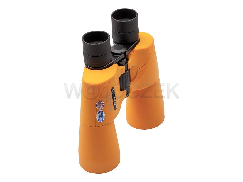 Yellow LR-071D Professional brand COMET 10x50 DPS binoculars are designed for the most demanding users. Ingenious design and precise workmanship guarantee its highest quality. The DPS series of binoculars is designed for a variety of uses, it will prove ideal in the hands of nature lovers, scouts, sailors or for ordinary home use. To enhance the quality of use, the binoculars are waterproof, and the 10x zoom offers good visibility of details and a large field of view. The Yellow binoculars have 50mm objective lenses and large 26mm eyepiece lenses, which guarantee a sharp, clear and bright image and great visibility even after dark. Top-quality BaK-4 poro-prismatic glass optics have been used to ensure the highest image quality. XR-FMC multi-layer anti-reflective coatings provide very good light transmission and UV filter. COMET brand binoculars are solidly built, with an aluminum frame and a rubber protective coating, which provides a stable grip and gives the whole thing non-slip properties. The LR-071D binoculars are available in a designer yellow color.