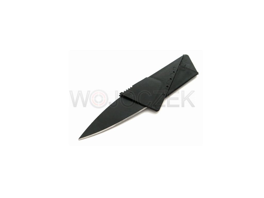 FOLDING KNIFE - CARD MT026 Size XL Compact knife in the shape of a credit card. The blade is covered with a Teflon coating that is resistant to abrasion and damage. Small size allows you to carry the card in your wallet or pocket. The blade is secured with a lock that prevents the uncontrolled opening of the knife in a wallet, purse or drawer. TECHNICAL DATA: Length when unfolded: 14.5 cm Blade length: 7 cm Package dimensions: 8.5 x 5.5 cm Blade: stainless steel Housing: plastic Color: black Country of origin: PRC