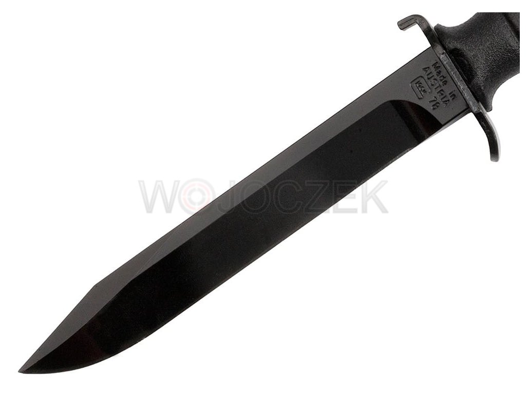 GLOCK 78 BLACK ASSAULT KNIFE. The Glock line of knives was developed in 1975 by the Austrian company Glock. Just a year later, in 1976, it became the official assault knife of the Austrian army. It is still used by many units around the world (including the Polish army). Today it is a legend and is eagerly purchased by soldiers and civilians alike. The Glock 78 has a simple design, is well balanced and extremely durable. The blade is made of thick, blackened stainless steel. The handle is made of hard polymer, the same material used to make Glock pistols. A metal guard protects the hand from accidentally slipping on the blade. One side of the guard serves as a bottle opener. The sheath is made of the same polymer as the handle. It has a strong buckle that prevents the knife from slipping out. The belt clip is designed to be quickly attached without having to thread it through the entire belt. Recommended for survival trips and collectors.