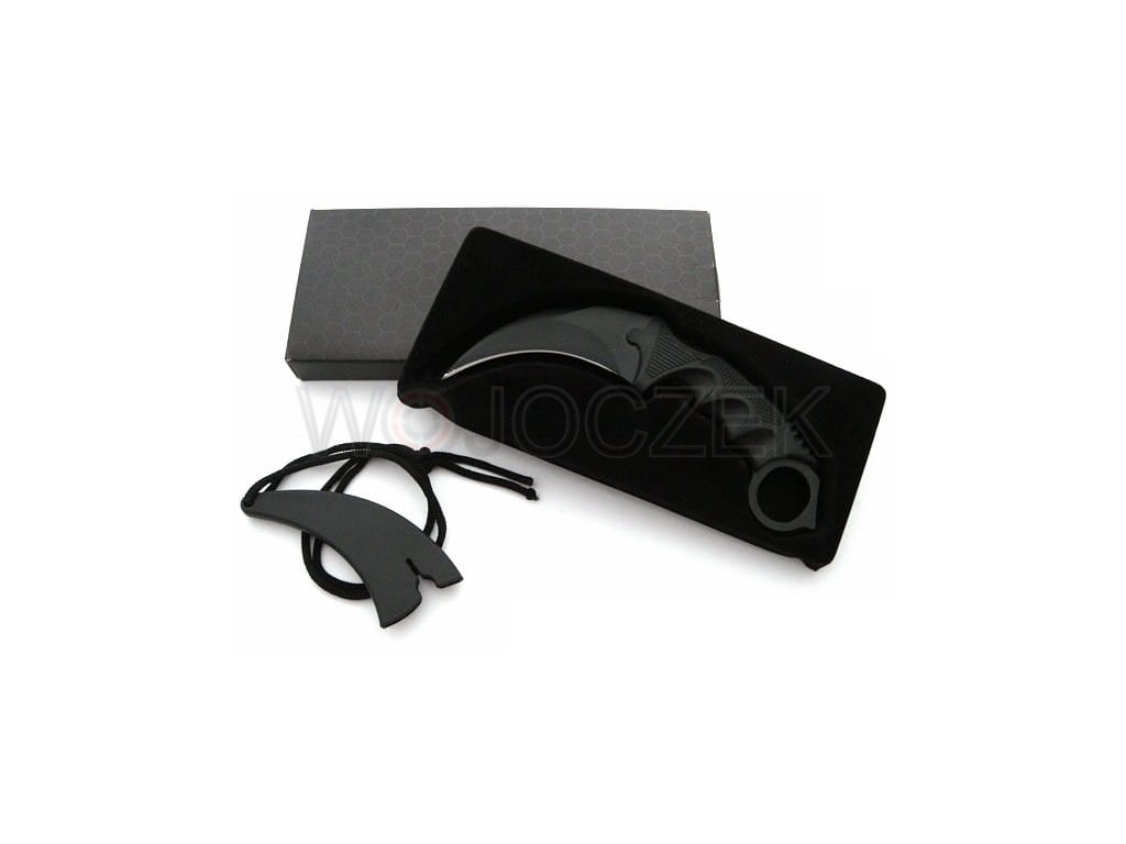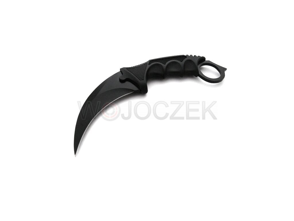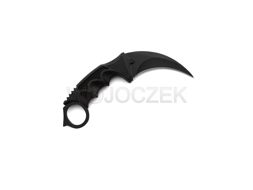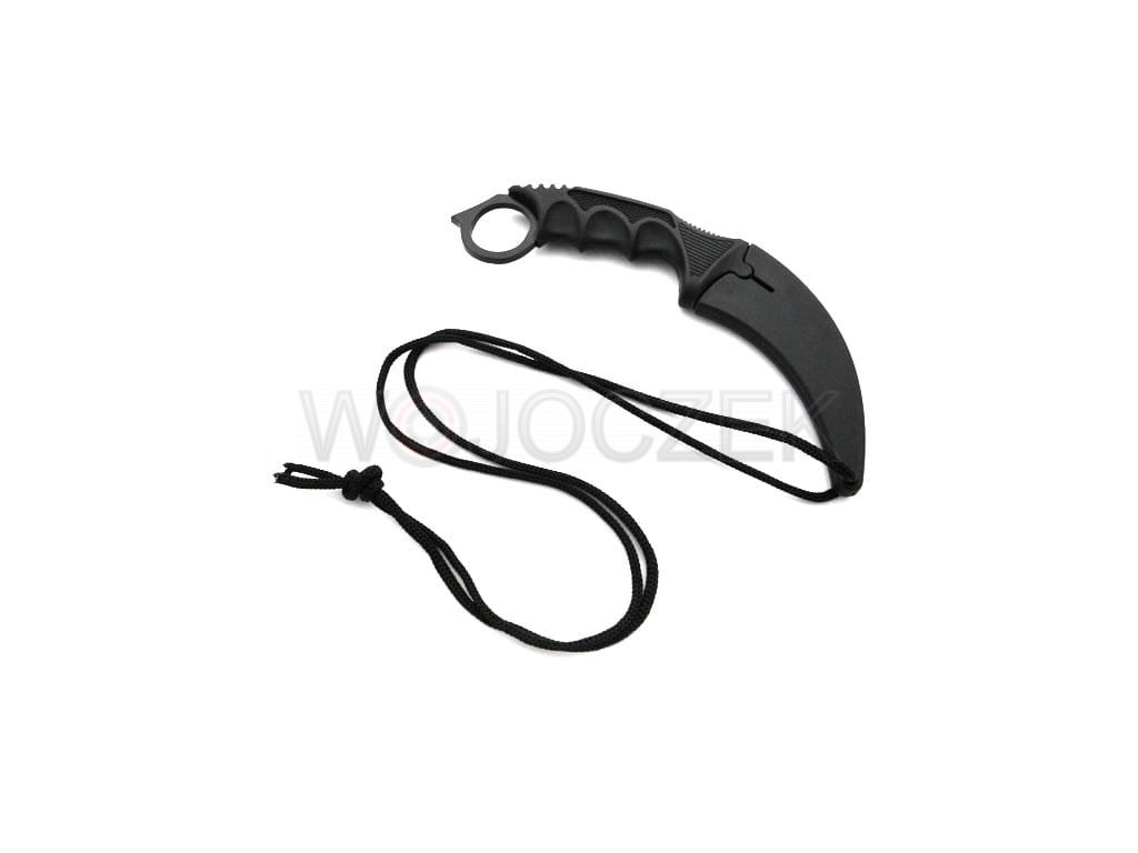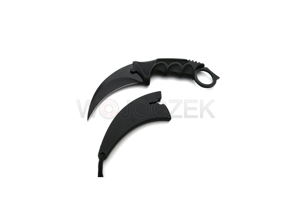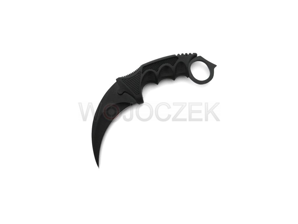 The N062A karambit knife is a replica of the knife from the computer game CS:GO. It features a curved head and a handle with a hole at the end. The blade of the knife is made of stainless steel. The ergonomic, non-slip handle is made of strong plastic and has finger cutouts, providing a secure grip for the user. It comes with a scabbard with a rope, which allows you to hang the knife around your neck. The knife is new and sharp.