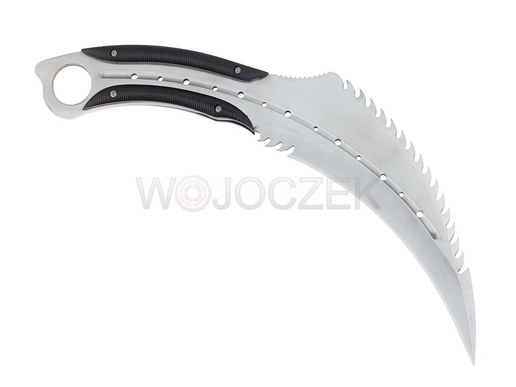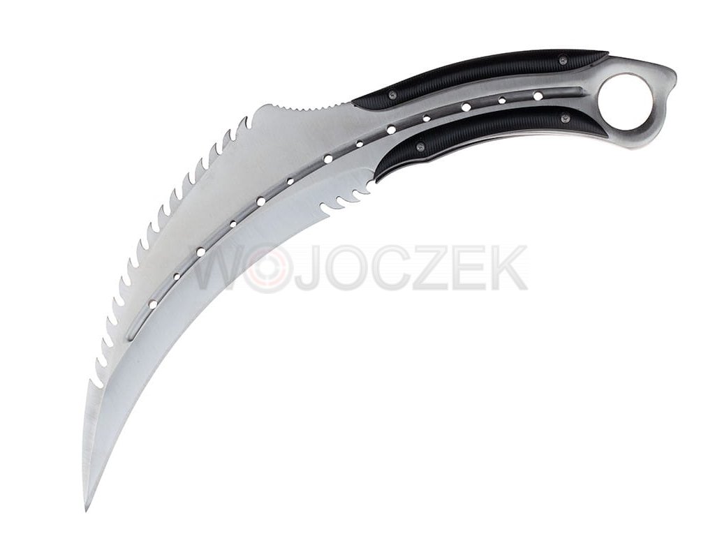 A powerful karambit is quite a treat for any knife lover. It's heavy, huge and will be perfect for special tasks. Although knives of this type originated in the culture of indigenous Filipino peoples, in modern times they have made a comeback in a different and sensational design thanks to the cult game Counter Strike CS:GO. The Karambit knife features an extremely sturdy Full Tang construction, which guarantees its immense strength and reliability. The internal monolith is made of a single sheet of 440 stainless steel with a thickness of as much as 5 mm. This material is extremely resistant to damage and has high anti-corrosion properties. Classic for karambits, the head was equipped with a traditionally curved smooth blade, which turns into an aggressive serration at the handle itself. In addition, the head has another serration on the back, which will prove useful as a universal saw. The comfortable handle is formed by liners made of durable plastic. Traditionally, there is a finger ring at the end of the handle to technically use the karambit. The handle fits well in the hand, has a thumb rest and allows you to work comfortably. It comes with a black leather pouch that can be attached to a trouser belt. Karambit N-071A is a real colossus that will awe any user.