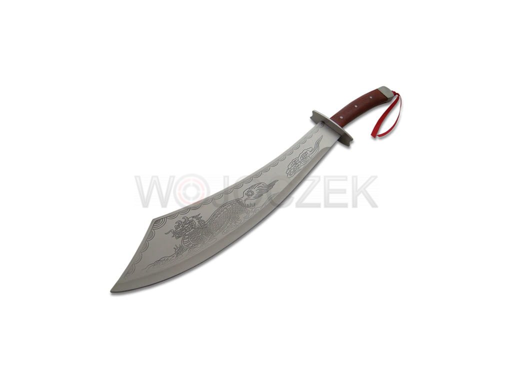 TECHNICAL DATA: Total length: 66 cm Blade length: 46 cm Blade width: 4.5 cm to 9.5 cm Blade thickness: 3 mm Weight in the case: 1170 g Steel: 420 Handle: metal + wood Cover: cordura Included there is a dart 15.5 cm long. Country of origin: PRC