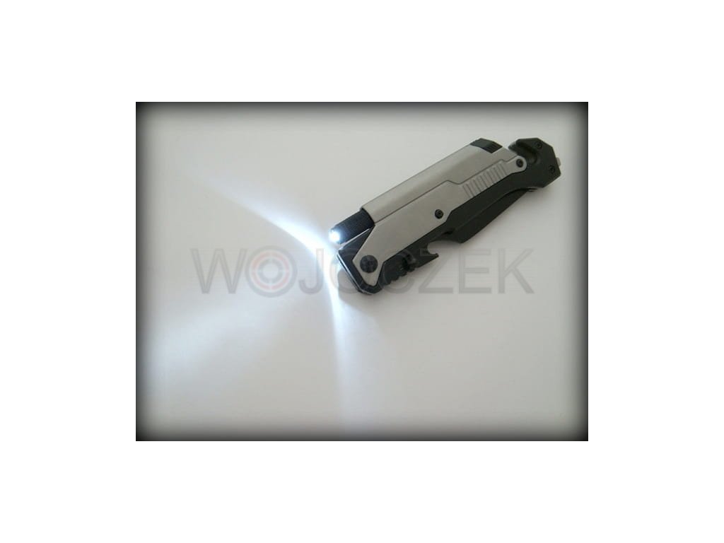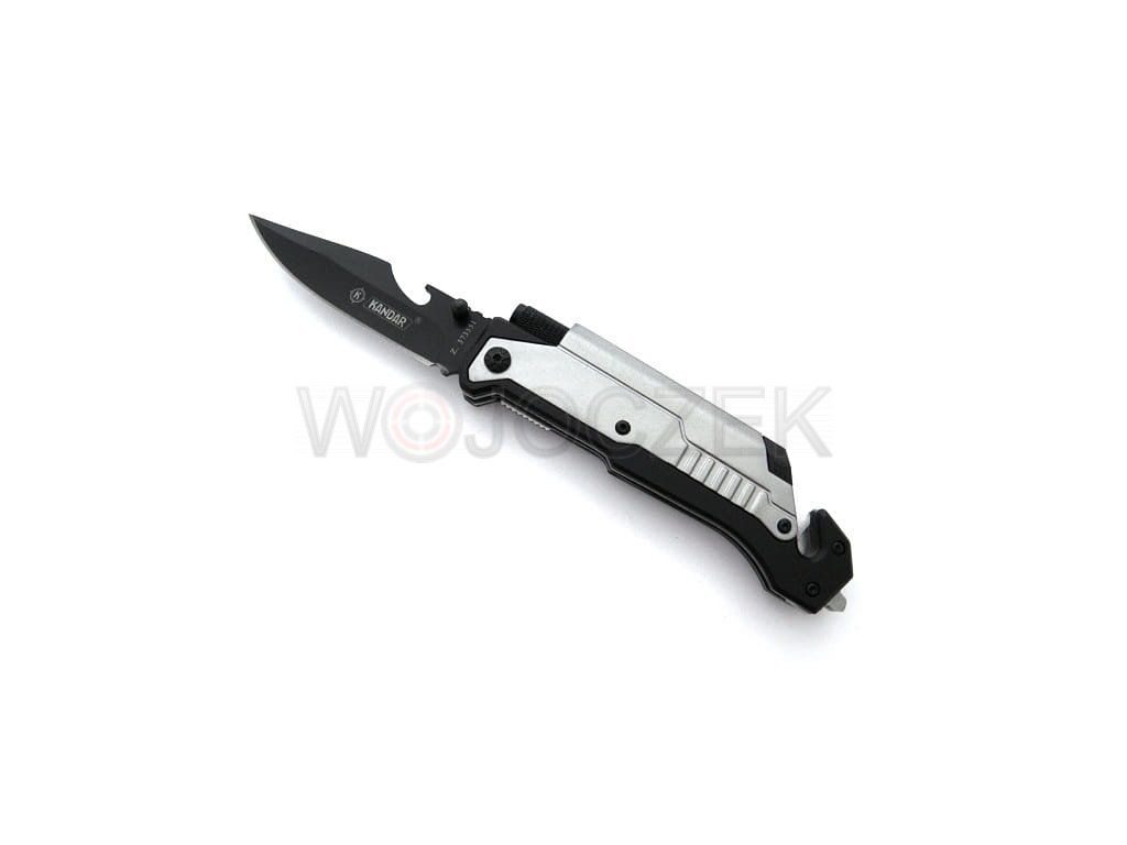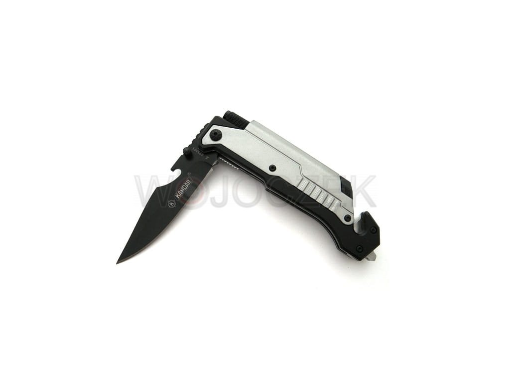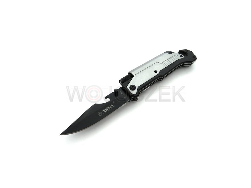 KANDAR RESCUE KNIFE 3W1 N-061H KNIFE + TORCH + FLIND A medium-sized rescue knife from the reputable brand kandar is always worth having with you in case of a crisis. It will be an ideal tool in specialist hands, but it will also be useful for the initial user for basic work. The rescue knife is equipped with a flashlight and a functional fire starter. The blade with a clip point profile is made of high-quality stainless steel number 420, covered with an additional protective layer, protecting the knife against corrosion and glare. The blade has a smooth blade and a bottle opener on the back. The ergonomic and very comfortable handle is made of metal and plastic. In its rear part there is a glass breaker and a safe blade for cutting ropes and straps. The blade opens very quickly and intuitively with a thumb stud, and the liner lock prevents unwanted closing. Thanks to its low weight and optimal size, the knife can be easily hidden in a pocket, and thanks to the clip, it can also be attached to a belt.