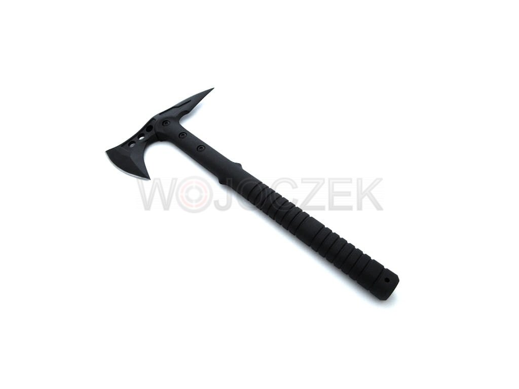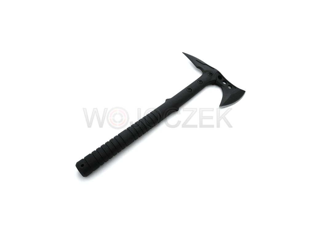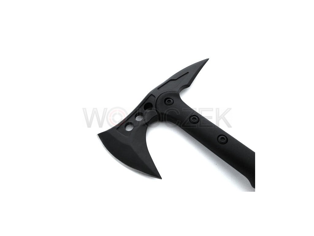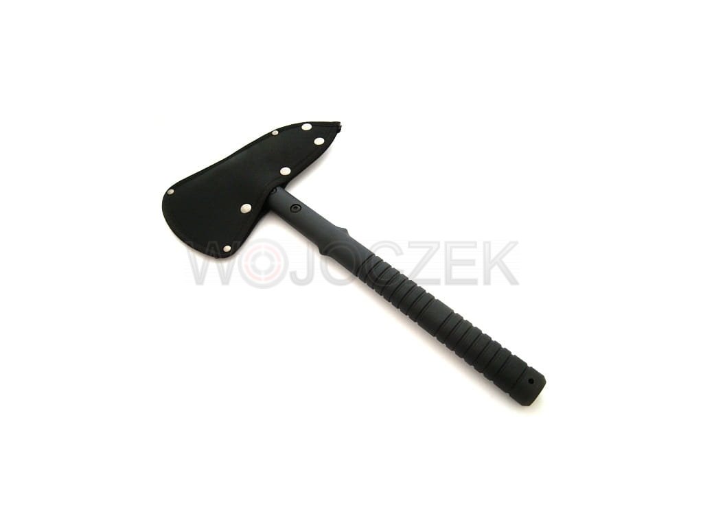 An extremely durable survival axe in a modern, designer version. This modified tomahawk is a functional, versatile tool ideal for outdoor work during survival trips, camps or camping. The head was made of extremely resistant and high-grade 440 stainless steel. The material was additionally coated with a matte protective coating, which effectively protects against corrosion and nullifies the unwanted glare effect. The head in the rear part has been equipped with a skewer, which can be used like a mountain checker. The comfortable, notched handle was made of resistant ABS plastic, which has non-slip properties, extremely important during bad weather conditions. The black survival axe is perfectly balanced, allowing you to make precise assaults without straining your hands or muscles. The tactical axe comes with a blade pouch, which can be attached to your trouser belt or to your equipment. An excellent tool that will be an ideal piece of equipment for any expedition.
