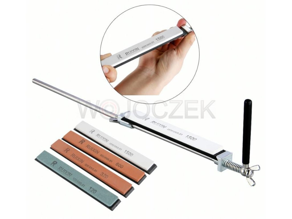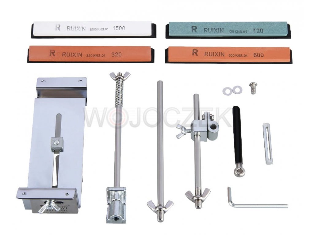 A set of sharpeners for precision sharpening. It is perfect for both kitchen and military applications. It contains stone sharpeners of different grits, so that we can get the perfect surface of the blade. The system allows you to sharpen knives, chisels, cleavers and scissors. The set includes four stones with gradations of 120, 320, 600, 1500. RUIXIN PRO III system will allow anyone to perfectly sharpen a knife or scissors regardless of skill and experience. By forcing the sharpening angle and four stones of different gradations, anyone is able to sharpen a knife like a professional.