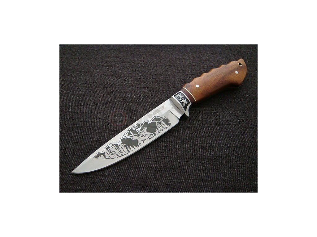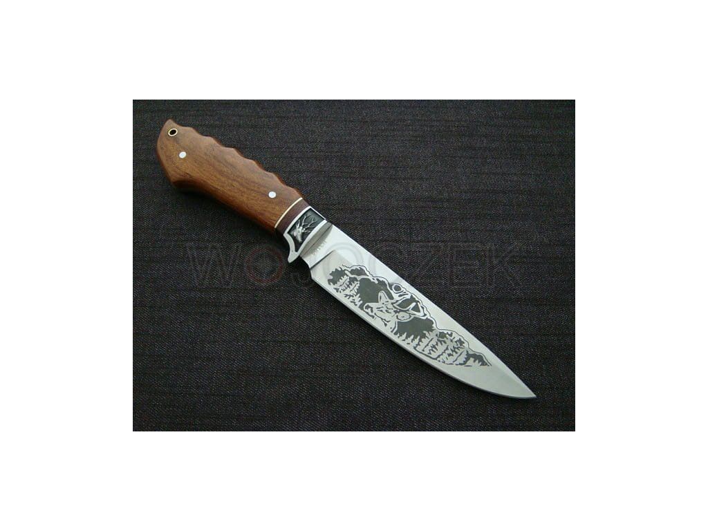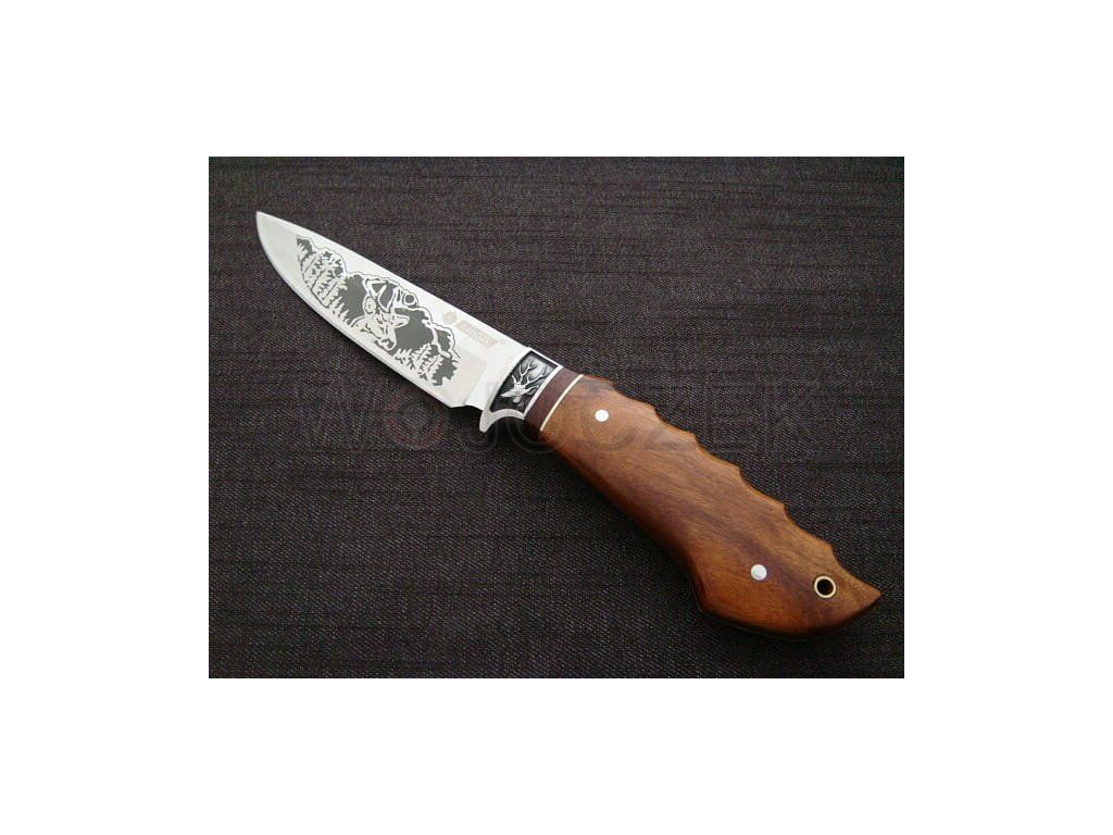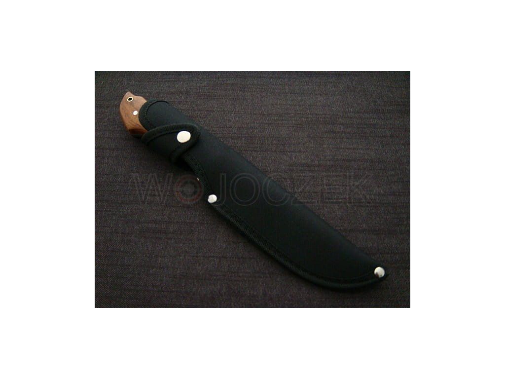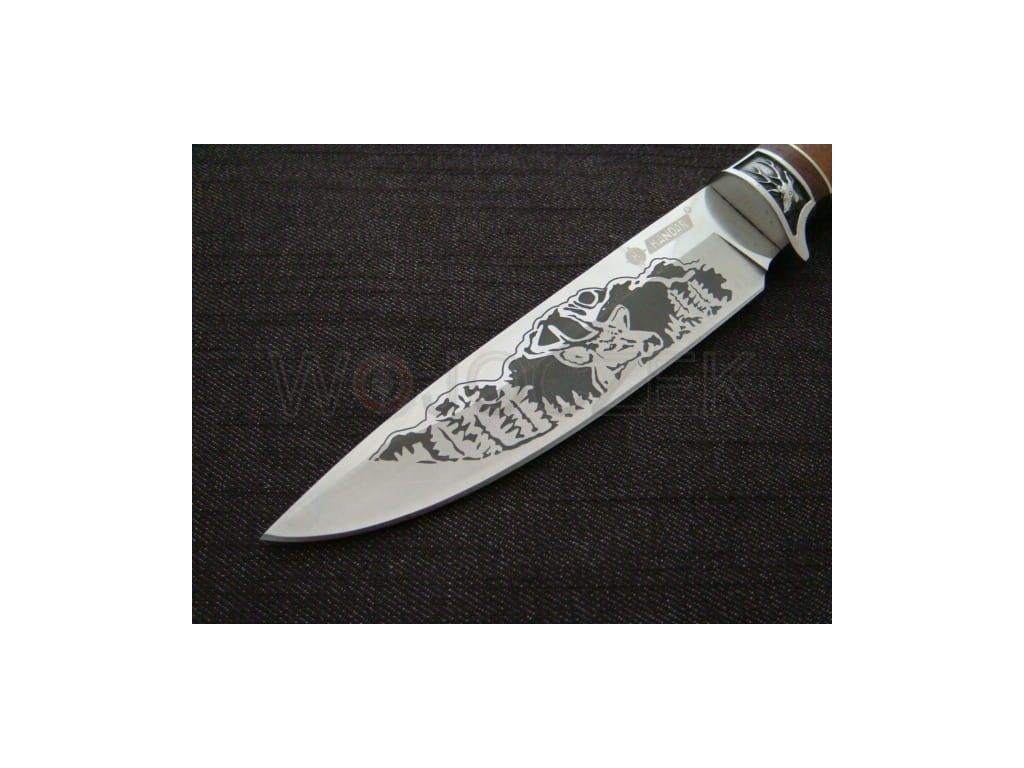 LOVECKÝ NŮŽ KANDAR N-215 Masivní a extrémně robustní lovecký nůž ideální pro ty nejnáročnější úkoly. Značka Kandar navrhla model N-215 s mimořádnou přesností a opatřila jej konstrukcí Full Tang. Tato konstrukce mu dodává maximální odolnost proti možnému poškození. Monolitická část tvořící rukojeť a čepel s zahnutým hrotem jsou vyrobeny z vysoce kvalitní nerezové oceli 440. Čepel je z obou stran zdobena obrázkem jelena v říji. Lovecký nůž má ergonomickou a velmi pohodlnou rukojeť s dřevěnou podšívkou. Rukojeť má na zadní straně výřezy pro prsty, které umožňují držení nože v obrácené poloze. Kovová záštita s dekorací hlavy jelena chrání ruku před nežádoucím sklouznutím směrem k ostří. Lovecký nůž má v zadní části otvor, který umožňuje zavěšení šňůrky nebo kroužku na klíče. Sada obsahuje černé, klasické pouzdro z Cordury, které lze připevnit na opasek. Odolnost a spolehlivost loveckého nože Kandar bude ideální pro náročné venkovní podmínky.