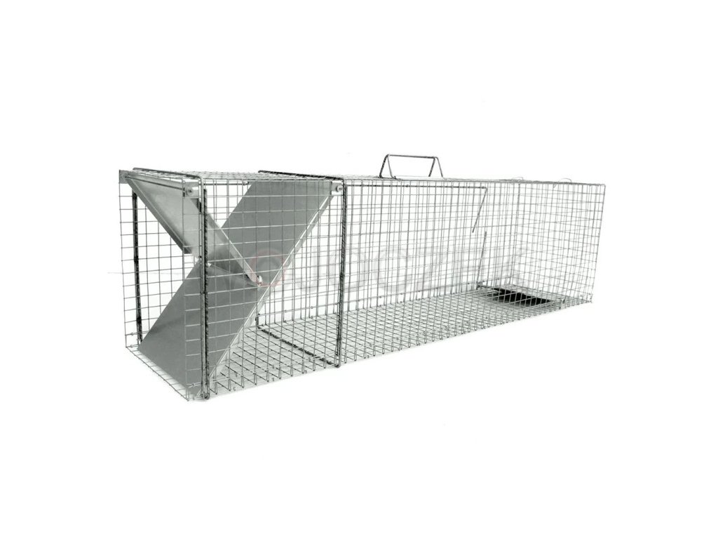 Velká odolná past s antikorozní úpravou, vybavená jedním vstupem a bezpečným uzavíracím mechanismem. Tato konstrukčně pevná past má drát o tloušťce 1,8 mm a funguje na principu „mostového“ uzavření, které účinně zachytí zvěř uvnitř.