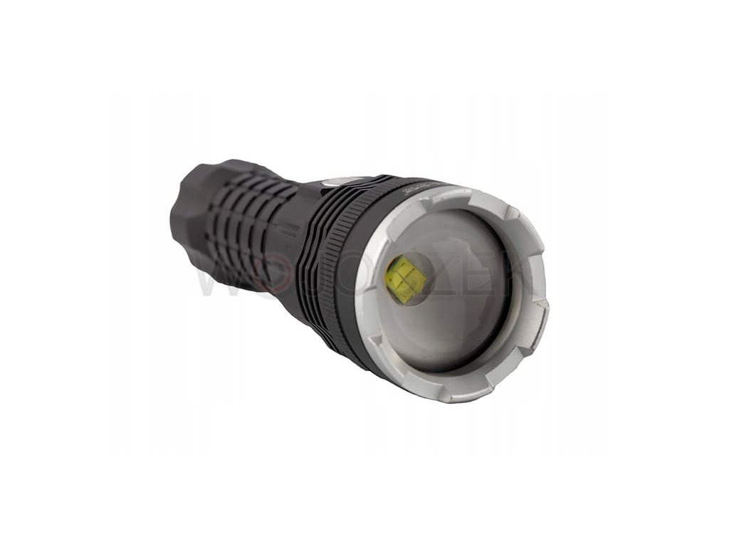 Latarka BL-A72-P50 renomowanej firmy X-BALOG została zaprojektowana z myślą o wielu różnych zastosowaniach. Może być używana przez służby mundurowe, wojsko, myśliwych, miłośników przyrody oraz do użytku domowego. Wyposażona w najnowocześniejszą diodę XHP50. Dioda XHP50 to następca popularnej diody XM-L3-U3. Jest to niesamowicie energooszczędna półprzewodnikowa dioda o bardzo dużej, wręcz oślepiającej jasności. Żywotność diody do 100 000 h. Dioda XHP50 używana jest wyłącznie w profesjonalnych urządzeniach i zapewnia moc 2000 lumenów. Korpus latarki wykonano z aluminium lotniczego, dzięki czemu latarka jest odporna na uszkodzenia oraz trudne warunki eksploatacji. Zasilanie: 1x akumulator litowo-jonowy 18650 3,7V-4,2V (w zestawie) lub 3x bateria AAA. W komplecie kabel USB do ładowania. Latarka posiada 5 trybów świecenia: Światło ciągłe 100% mocy Światło ciągłe 60% mocy Światło ciągłe 30% mocy Stroboskop SOS We wszystkich trybach dostępna jest funkcja ZOOM. Płynna regulacja skupienia światła pozwala na uzyskanie zarówno bardzo szerokiej wiązki o niewielkim zasięgu jak i silnie skupionej o znacznym zasięgu nawet do 1500 metrów.