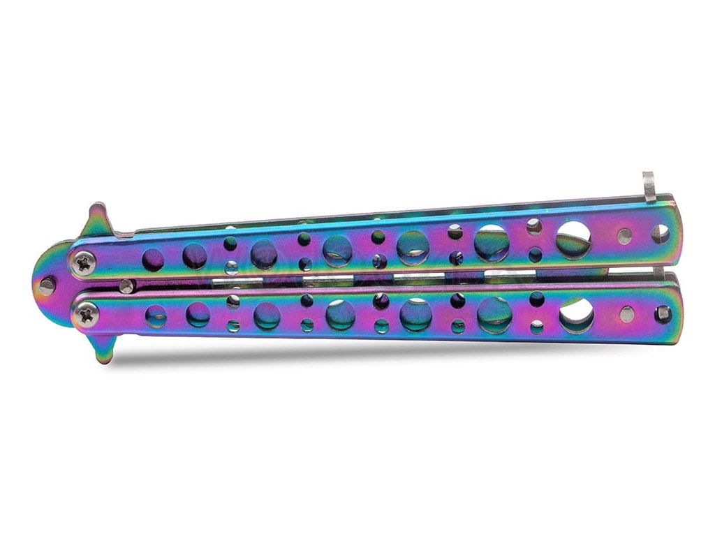 Współcześnie ten kultowy model doczekał się niezliczonej ilości wariacji. Nóż motylkowy N-500M w kolorze Rainbow Fade prezentuje się zjawiskowo, wzbudzając zainteresowanie i ciekawość. Taki proces oksydacji zapewnia także większe właściwości antykorozyjne.