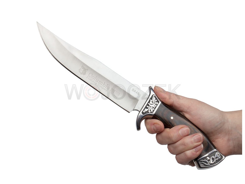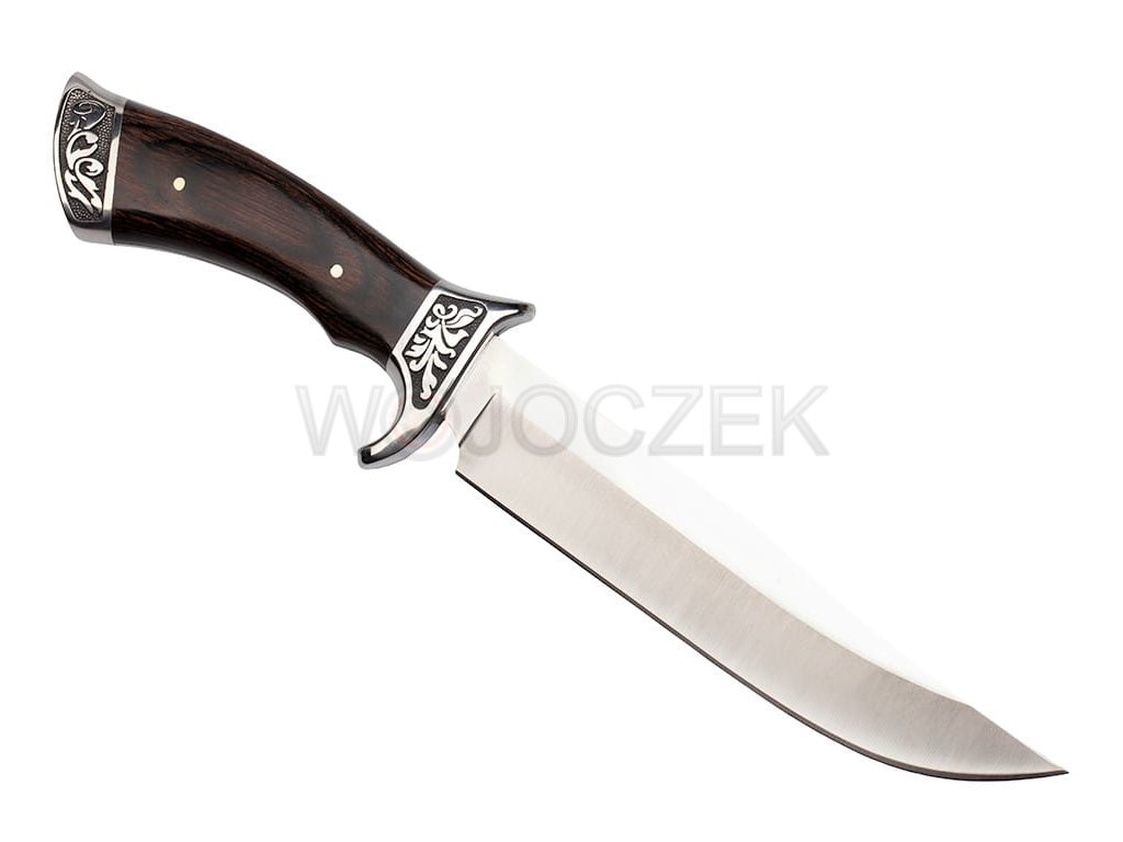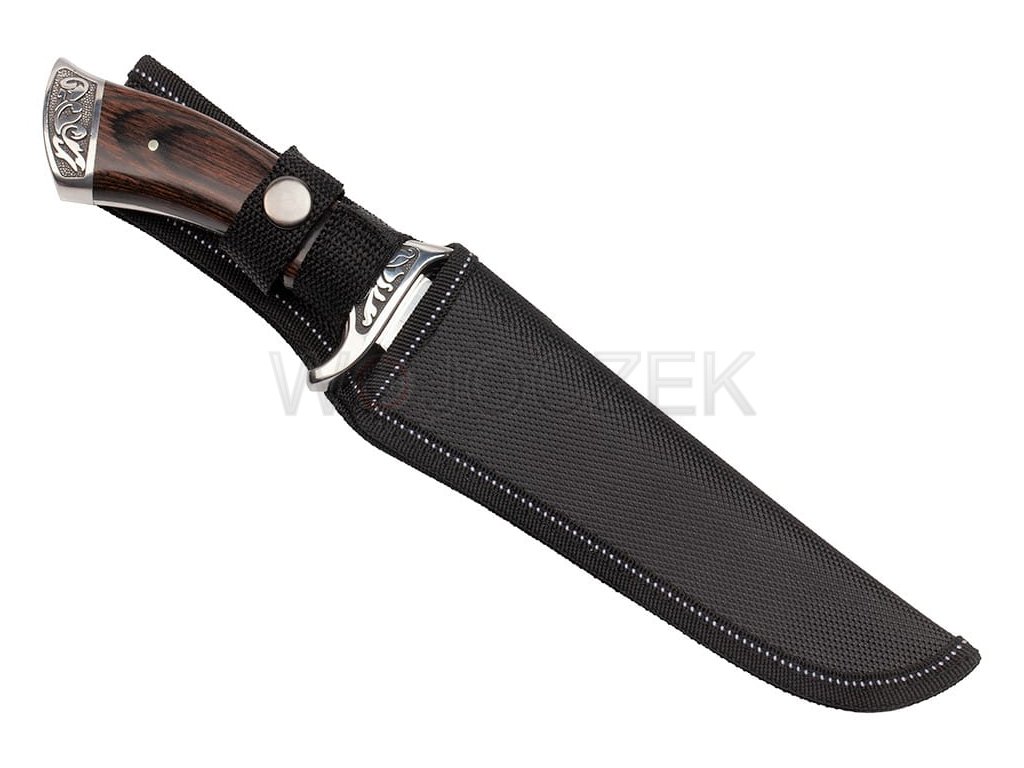 Niewielkich rozmiarów finka myśliwska jest idealnym narzędziem do pracy w warunkach plenerowych. Nożyk myśliwski jest doskonale zaprojektowany i solidnie wykonany z najlepszych materiałów. Głownia o klasycznym dla noży myśliwskich profilu trialing point służy między innymi do skórowania zwierzyny. Została ona wykonana z wysokojakościowego materiału jakim jest stal nierdzewna typu 440. Dzięki zastosowaniu tego materiału nóż myśliwski zyskuje ogromnej odporności i wytrzymałości na uszkodzenia. Piękna i efektowna rękojeść została wykonana z metalu obłożonego różnokolorowymi okładzinami z drewna. Rękojeść jest wygodna i świetnie leży w dłoni, pozwala na komfortowe wykonywanie pracy. Niewielki jelec skutecznie chroni rękę przed zsunięciem się na krawędź tnącą. Finka myśliwska posiada pokrowiec z cordury, który można przypiąć do paska spodni, tak aby nóż był zawsze pod ręką. Idealny prezent dla myśliwych, wędkarzy, harcerzy i miłośników przyrody.