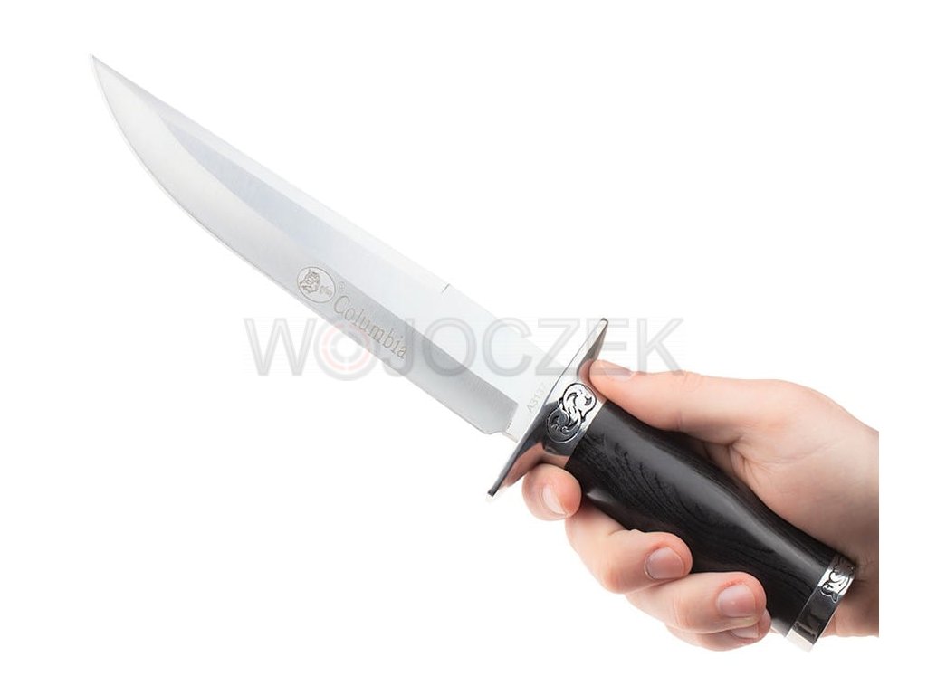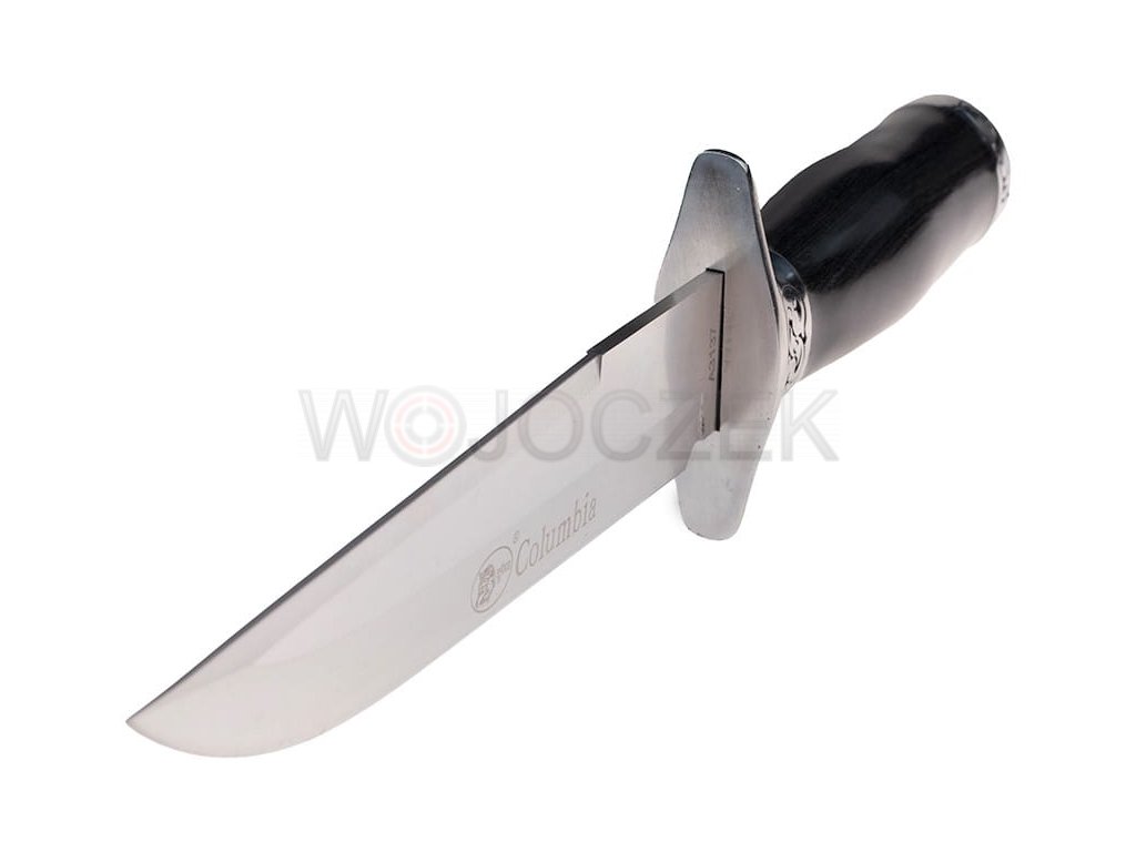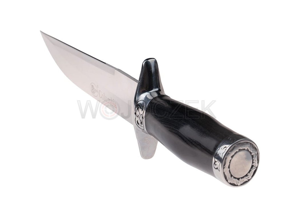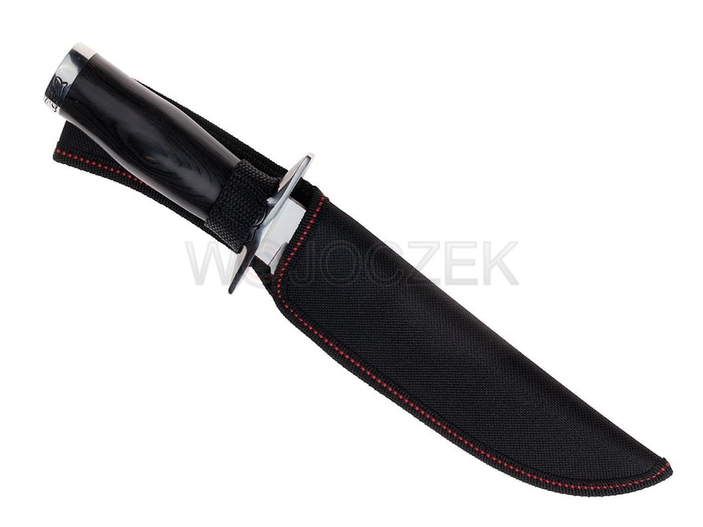 Doskonale nada się do oprawiania zwierzyny, prac obozowych czy innych plenerowych czynności. Długa głownia o profilu clip point została wykonana z wysokogatunkowej stali nierdzewnej typu 440. Materiał ten posiada wysokie właściwości antykorozyjne i jest wyjątkowo odporny na uszkodzenia i ścieranie. Masywna rękojeść została wykonana z drewnianej okładziny. Doskonale leży w dłoni i pozwala na stabilny chwyt. Takie rozwiązanie nie obciąża dłoni i gwarantuje komfortową pracę przez długie godziny. Tradycyjny nóż myśliwski posiada metalowy jelec, który zabezpiecza dłoń przed ewentualnym zsunięciem się i skaleczeniem o ostrze. Jelec wraz z głowicą zostały ozdobione florystycznym ornamentem. W zestawie znajduje się czarny pokrowiec z cordury, który można przymocować do paska spodni. Nóż myśliwski N-159A to solidnie wykonane narzędzie, które zachwyci każdego fana kultury i tradycji łowieckiej.
