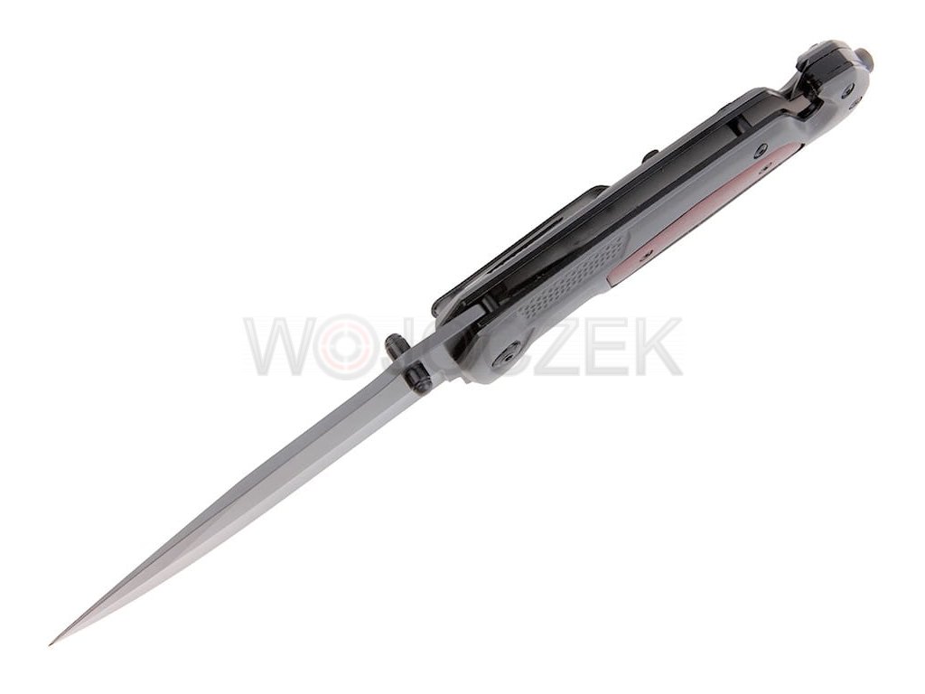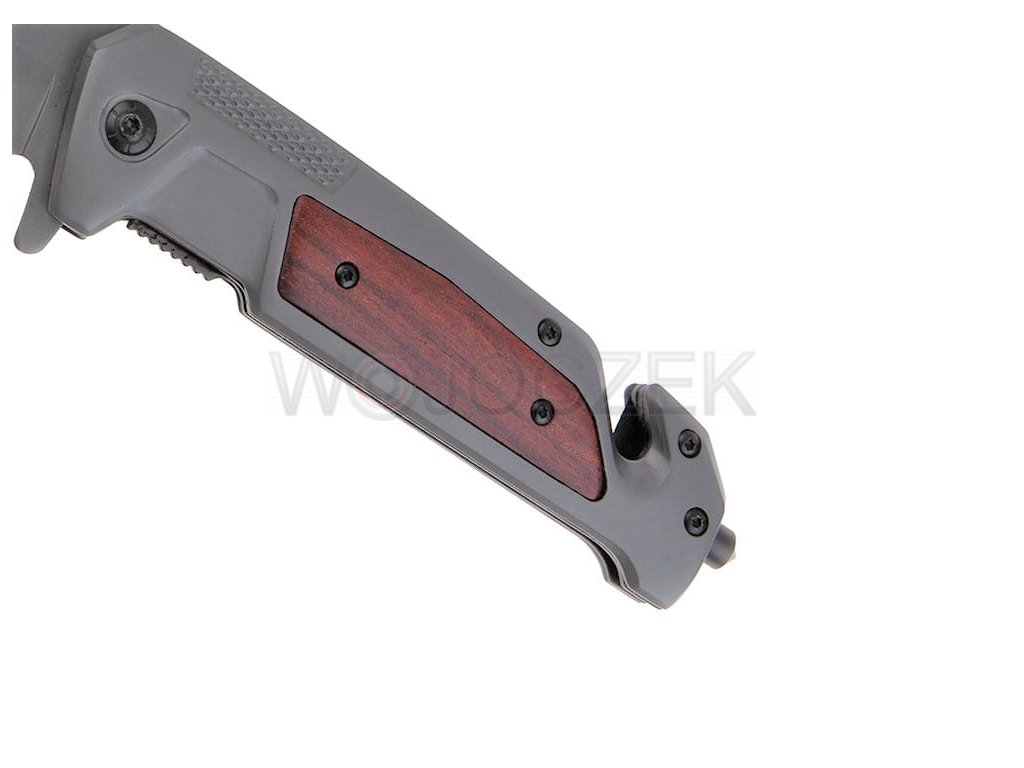 Będzie on rewelacyjnym narzędziem, które dzięki metalowemu klipsowi może być zawsze na wyciągnięcie ręki. Nóż sprężynowy posiada głownię o klasycznym i ostrym profilu clip point, która została wykonana ze stali nierdzewnej typu 420. Materiał ten jest wyjątkowo odporny na uszkodzenia i bardzo podatny w procesie ostrzenia. Dodatkowo głownia została pokryta szarą powłoką ochronną, która maksymalizuje właściwości antykorozyjne i niweluje efekt odblasku. Nóż ratowniczy posiada doskonale leżącą w dłoni, ergonomiczną rękojeść. Gwarantuje wyjątkowo komfortową pracę nawet przez dłuższe godziny pracy. Nóż otwiera się za pomocą dwustronnego kołka pod kciuk oraz wspomaganego sprężyną flippera. Sposób otwarcia jest bardzo intuicyjny, a sam moment przebiega płynnie i błyskawicznie. Klasyczna blokada typu liner lock zabezpiecza ostrze przed niepożądanym zamknięciem się w trakcie wykonywania pracy. Nóż ratowniczy N-394C to niezawodne narzędzie, które może okazać się niezbędne w kryzysowych sytuacjach.