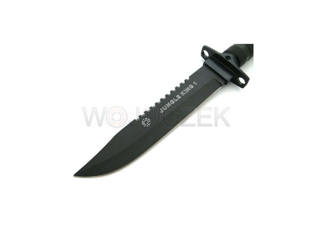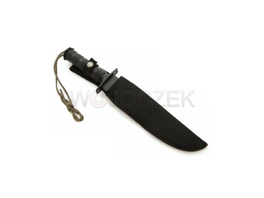 Ciężki i bardzo solidny nóż wojskowy znakomity do survivalu. Potężna, masywna głownia została precyzyjnie wykonana z wysokogatunkowej stali nierdzewnej typu 420, dodatkowo pokrytej czarną powłoką, która chroni nóż przed korozją, a użytkownika przed niepożądanym odblaskiem.