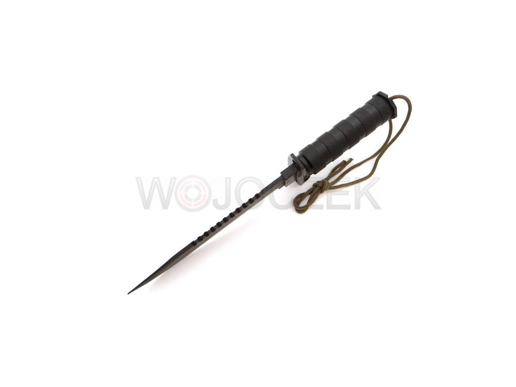Nóż wojskowy posiada głownię o profilu trialing point z bardzo ostrym i niezawodnym ostrzem. Na grzbiecie znajduje się funkcjonalna i uniwersalna piła, idealnie sprawdzająca się w ciężkich warunkach survivalowych.