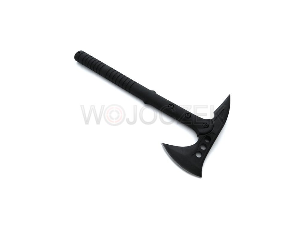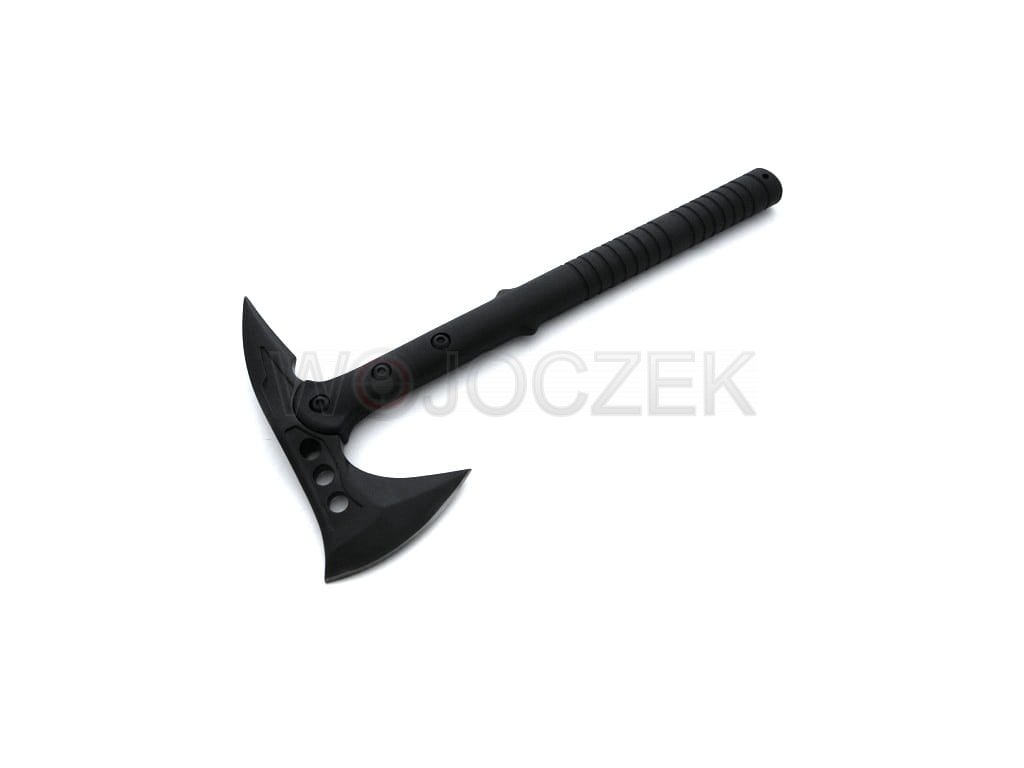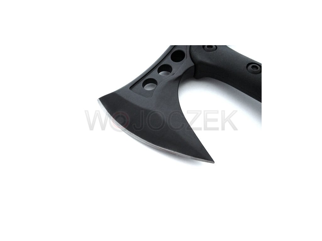 Wyjątkowo wytrzymały toporek survivalowy w nowoczesnej, designerskiej wersji. Ten zmodyfikowany tomahawk jest funkcyjnym, uniwersalnym narzędziem idealnym do pracy w plenerze podczas survivalowych wyjazdów, obozów czy biwaków. Głownia została wykonana z wyjątkowo odpornej i wysokogatunkowej stali nierdzewnej typu 440. Materiał został dodatkowo pokryty matową powłoką ochronną, która skutecznie zabezpiecza przed korozją i niweluje niepożądany efekt odblasku. Głownia w tylnej części została wyposażona w szpikulec, którym można się posługiwać jak górskim czekanem. Wygodna, karbowana rękojeść została wykonana z odpornego tworzywa ABS, które posiada właściwości antypoślizgowe, niezwykle ważne podczas złych warunków pogodowych. Czarny toporek survivalowy jest doskonale wyważony, co pozwala na wykonywanie precyzyjnych zamachów nie nadwyrężając rąk ani mięśni. Toporek taktyczny posiada pokrowiec na ostrze, który można przymocować do paska spodni bądź do ekwipunku. Doskonałe narzędzie, które będzie idealnym elementem ekwipunku na każdą wyprawę.