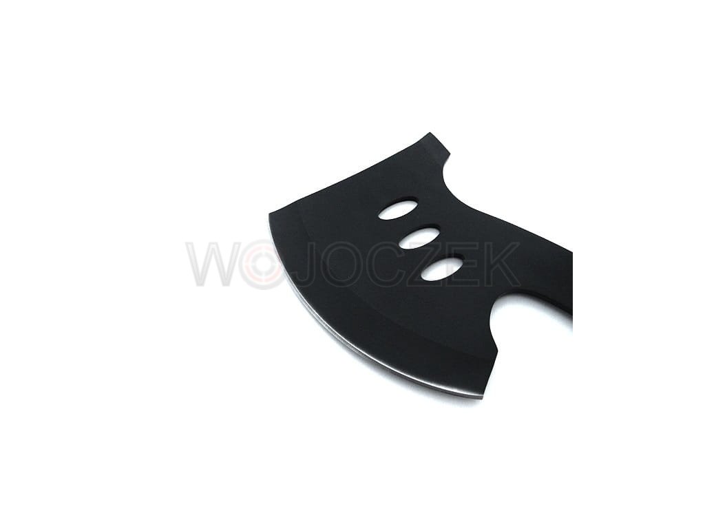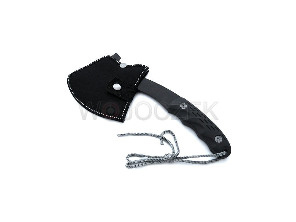 Niewielki, lecz potężny toporek survivalowy idealny na wycieczki, wyprawy czy biwaki. Jest niezwykle solidnym narzędziem, wykonanym z najlepszych materiałów. Zajmuje niewiele miejsca, więc bez problemu można go schować do każdego plecaka, a jego pokrowiec z cordury można przymocować do paska spodni w wygodny i bezpieczny sposób. Czarny toporek survivalowy posiada wytrzymałą konstrukcję typu Full Tang, nadaje mu ona ogromnej odporności na uszkodzenia. Wewnętrzy monolit został wykonany z wysokogatunkowej stali nierdzewnej typu 440, dodatkowo pokrytej czarną, matową powłoką niwelującą efekt odblasku. Wystająca tylna część głowni może służyć jako zbijak do szyb. Siekiera posiada ergonomiczną rękojeść wykonaną z gumopodobnego tworzywa, które posiada właściwości antypoślizgowe. W tylnej części rękojeści znajduje się otwór do którego przywiązano linkę paracord. Toporek ratunkowy posiada pokrowiec na ostrze, który można przymocować do paska spodni. Można go używać jako toporek do rzucania.