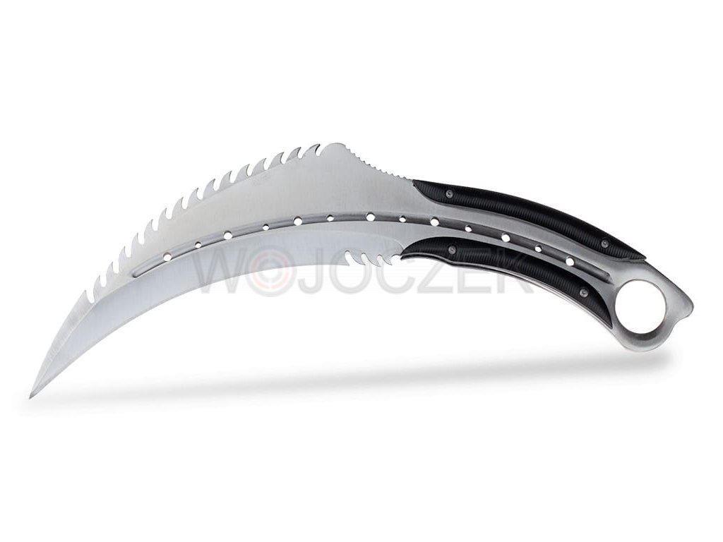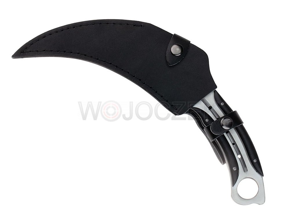 Potężny karambit to nie lada gratka dla każdego miłośnika noży. Jest ciężki, ogromny i doskonale sprawdzi się podczas wykonywania zadań specjalnych. Choć noże tego typu wywodzą się z kultury rdzennych ludów filipińskich, to współcześnie wróciły w różnorakim, rewelacyjnym designie za sprawą kultowej gry Counter Strike CS:GO. Nóż Karambit posiada niezwykle solidną konstrukcję Full Tang, która gwarantuje jego ogromną wytrzymałość i niezawodność. Wewnętrzy monolit został wykonany z jednego płata stali nierdzewnej 440 o grubość aż 5 mm. Materiał ten jest wyjątkowo odporny na uszkodzenia i posiada wysokie właściwości antykorozyjne. Klasyczna dla karambitów głownia została wyposażona w tradycyjnie zagięte ostrze gładkie, które przy samej rękojeści zmienia się w agresywne ząbkowanie. Dodatkowo głownia posiada kolejne ząbkowanie na grzbiecie, które sprawdzi się jako uniwersalna piła. Wygodną rękojeść tworzą okładziny z wytrzymałego tworzywa. Tradycyjnie na końcu rękojeści znajduje się pierścień na palec, by móc technicznie użytkować karambit. Rękojeść świetnie leży w dłoni, posiada oparcie na kciuk i pozwala na komfortowe wykonywanie pracy. W zestawie znajduje się czarny pokrowiec ze skóry, który można przymocować do paska spodni. Karambit N-071A to prawdziwy kolos, który wzbudzi zachwyt każdego użytkownika.