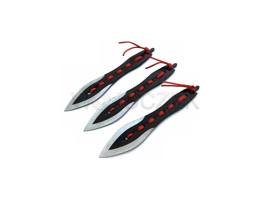 Noże są obustronnie ostrzone oraz dokładnie wyważone.