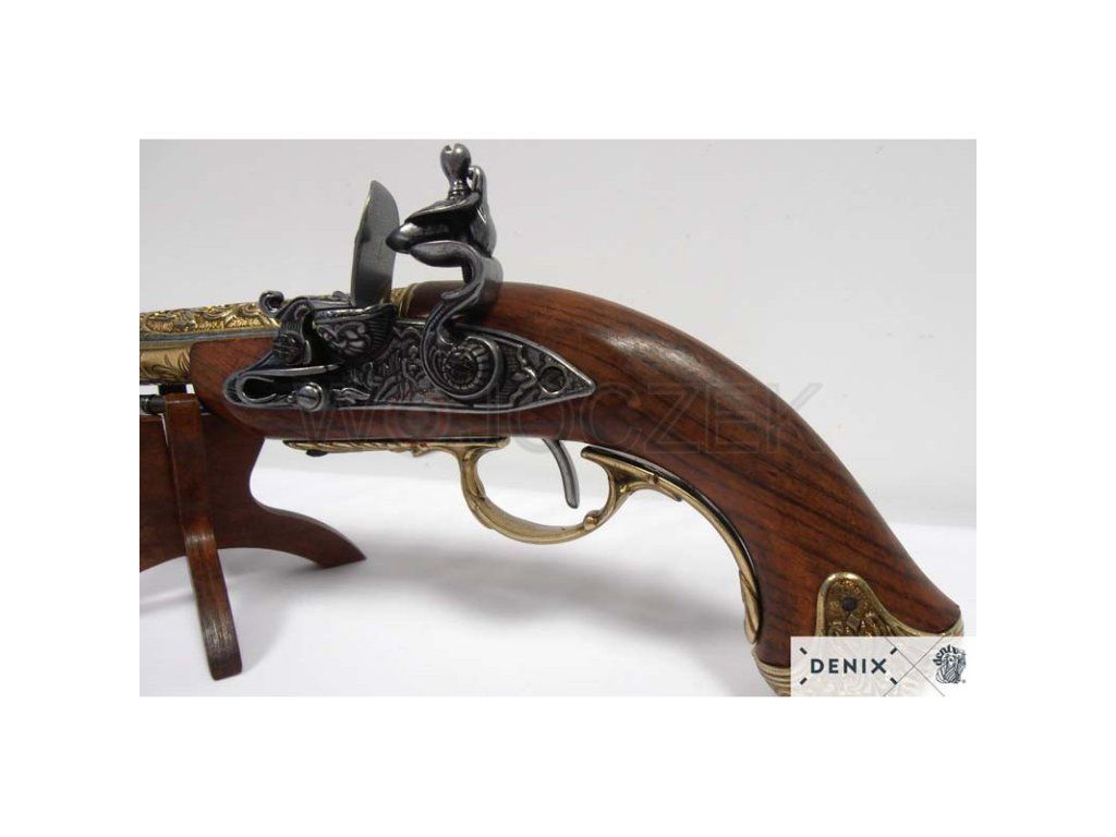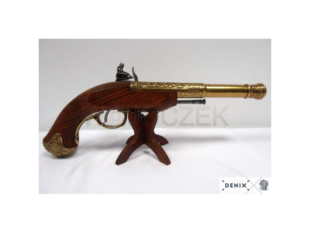 Pistole je určena pro leváky a vyrábí se v mosazném a šedém provedení.